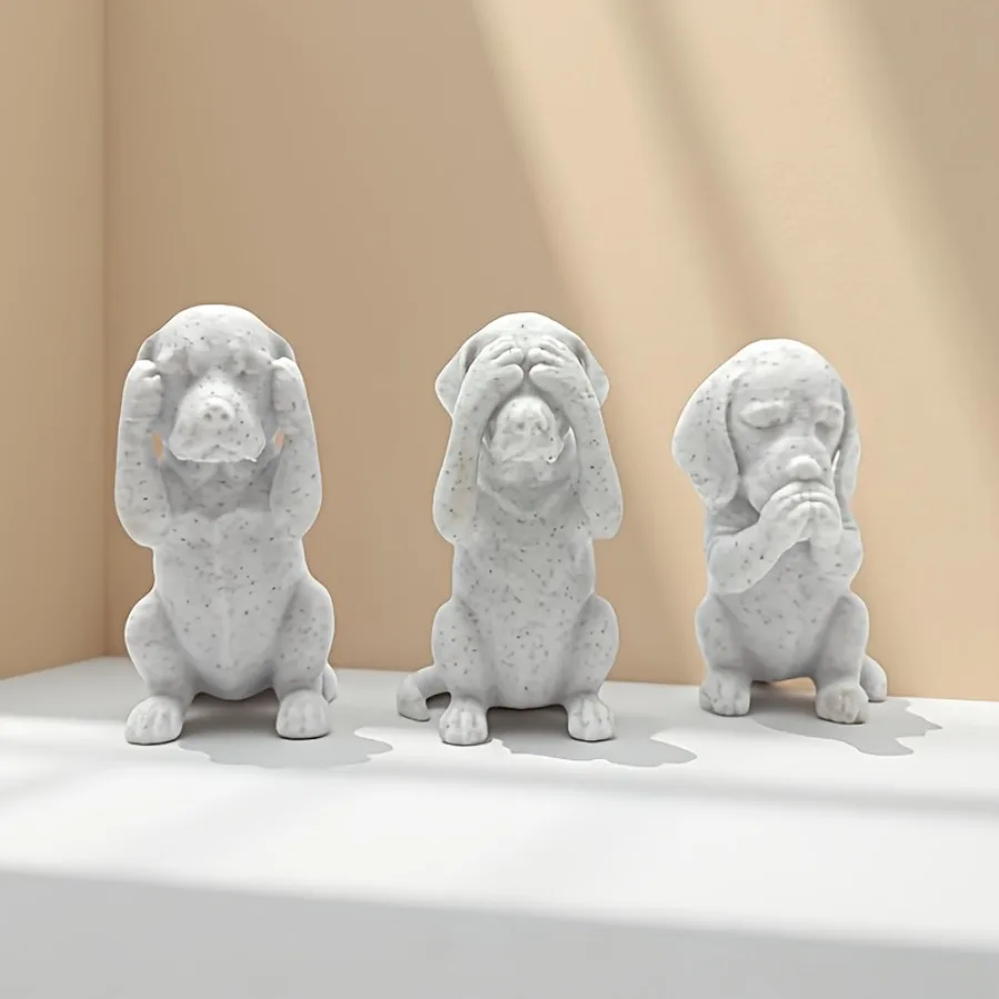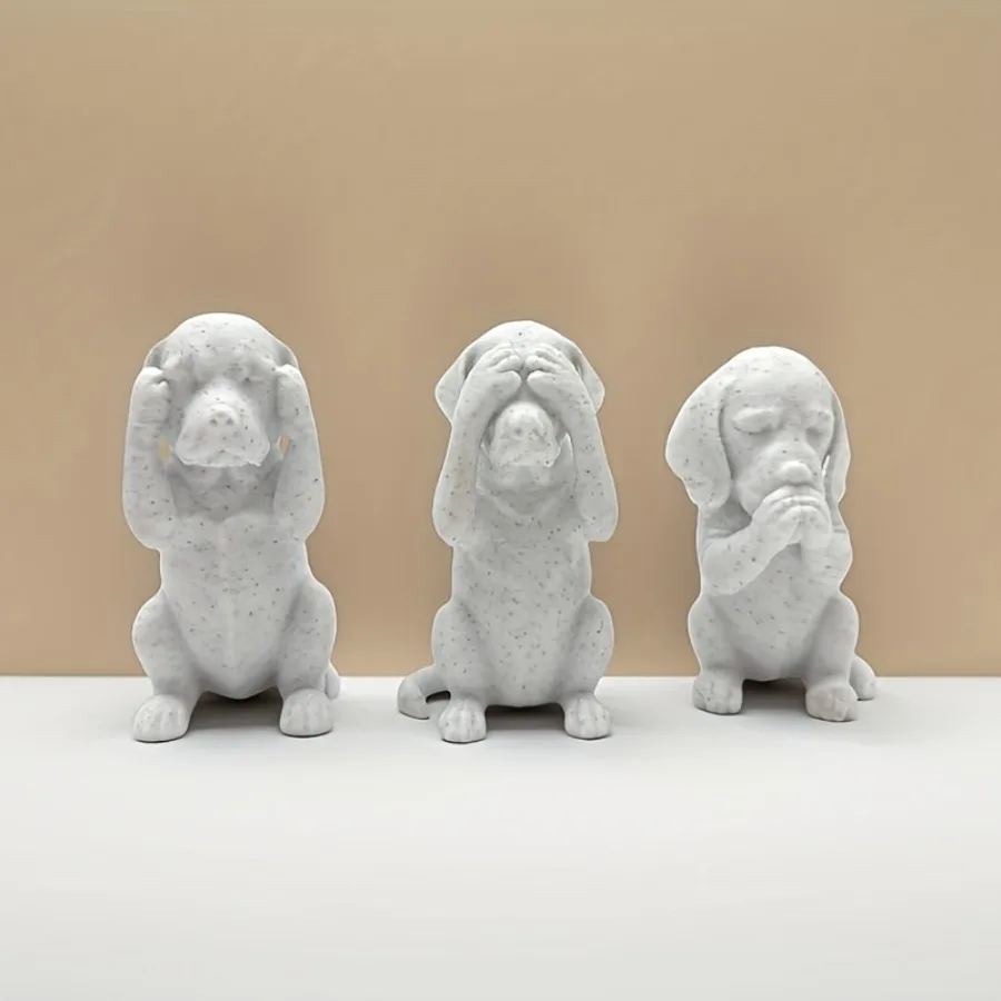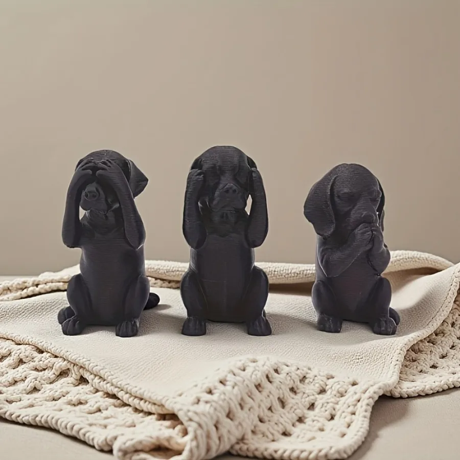 3-Piece Set of Dog Statues 3D Printed Dachshund Statues Suitable for Easter Christmas Halloween