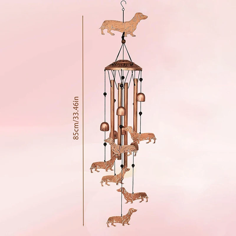 2.Aluminum and Metal Material: made of aluminum and metal material, these dachshund dog wind chimes are designed to withstand inclement weather; Their purple bronze coloring adds a touch of elegance and charm to your outdoor or indoor spaces; Enjoy the wind's melody from these unique dog wind chimes; Bring peace and harmony to your life.