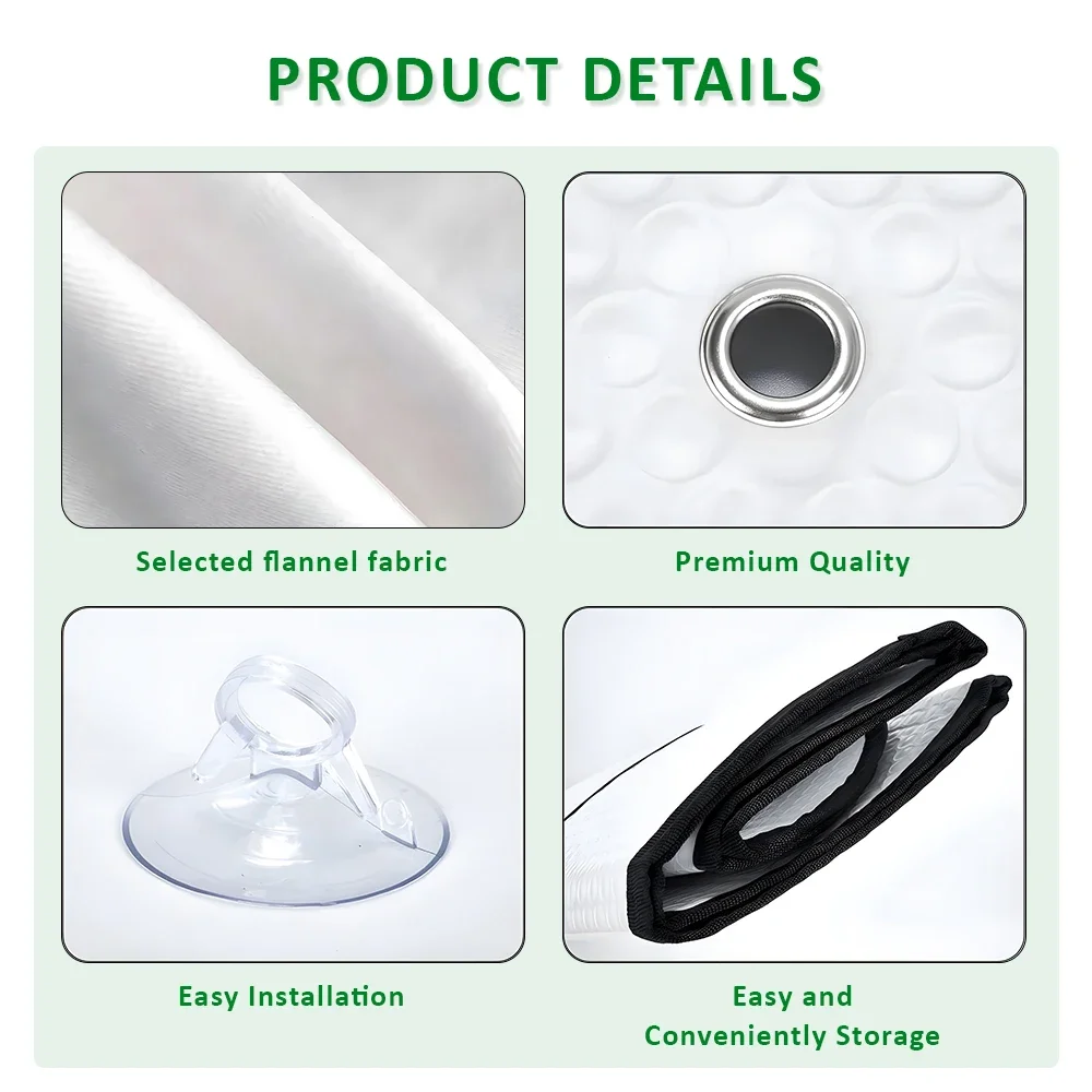 High-quality heat-insulating aluminum film material, strong heat insulation, sun protection and heat preservation, adsorbed on the car glass through suction cups, environmentally friendly digital inkjet printing process, the pigment directly penetrates into the fabric, and has the characteristics of water resistance and non-fading