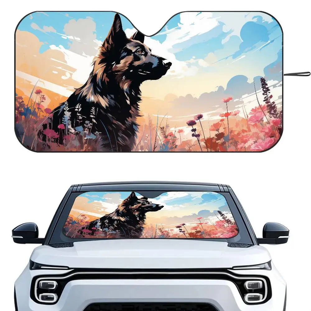 German Shepherd Car SunShade Windshield Foldable Three-layer Insulation UV Rays
