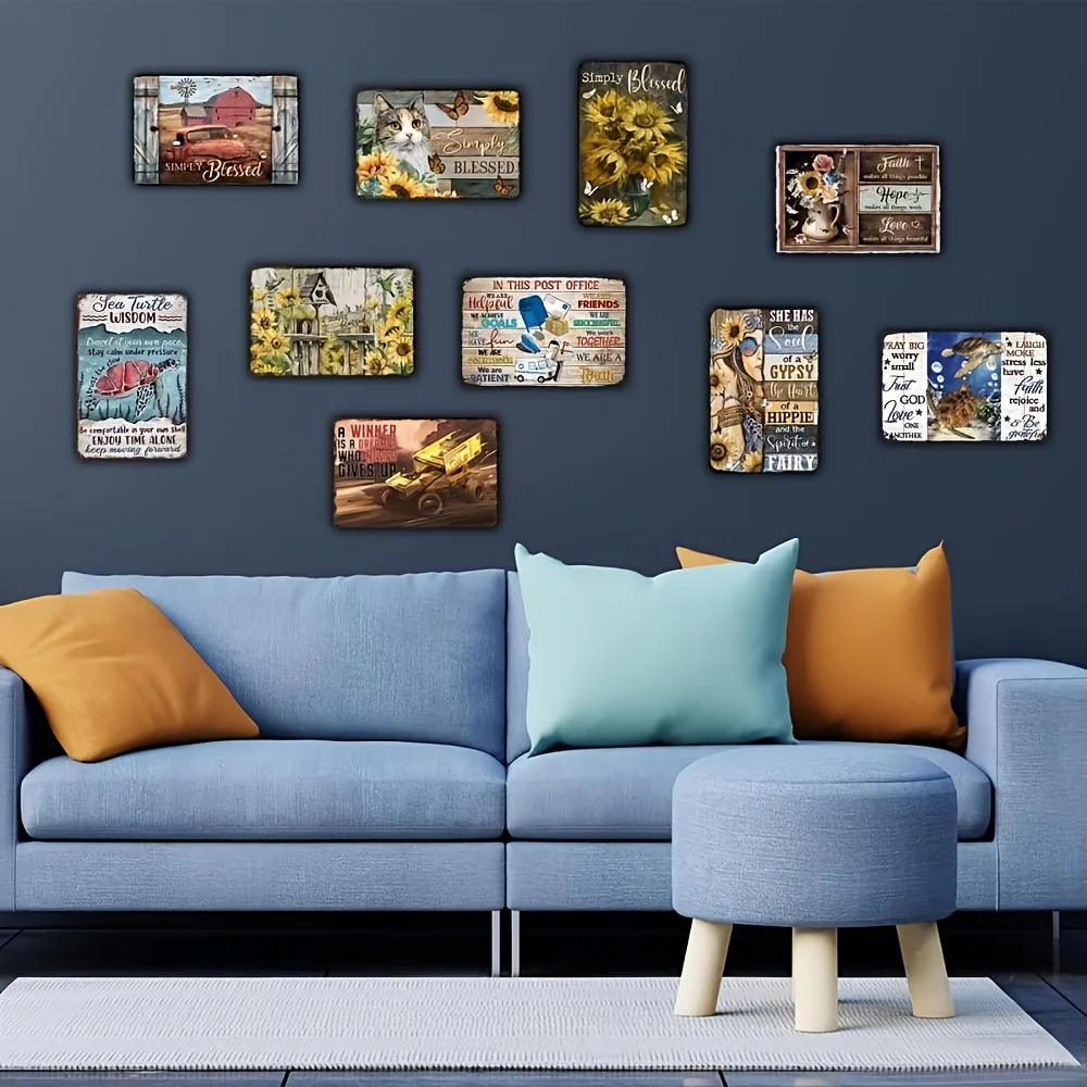 Constructed from premium tinplate for long-lasting use. Sold as a set with dimensions of 8x12 inches/20*30cm. Features 4 pre-drilled holes for easy and quick installation. Ideal for enhancing the visual appeal of residences or offices. A fantastic option for gifts on occasions like Valentine's Day, Halloween, Thanksgiving, Christmas, and more.