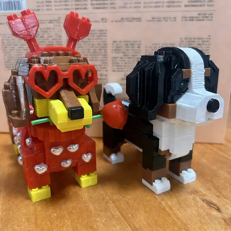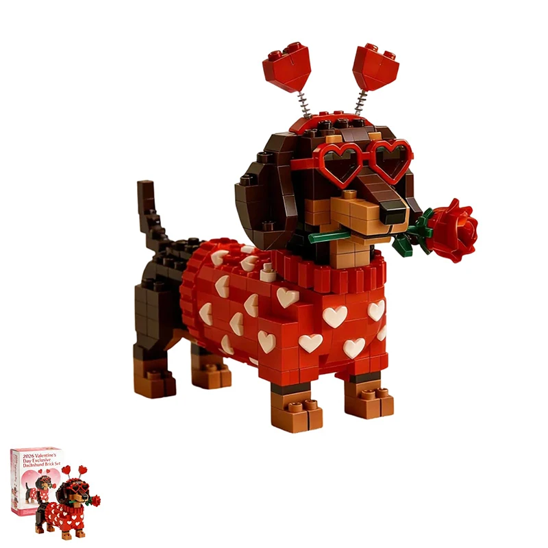 Valentine Dachshund Building Blocks Set Romantic Gift Party Props DIY Cute Dog Dachshund Bern Mountain Blocks Desktop Decoration